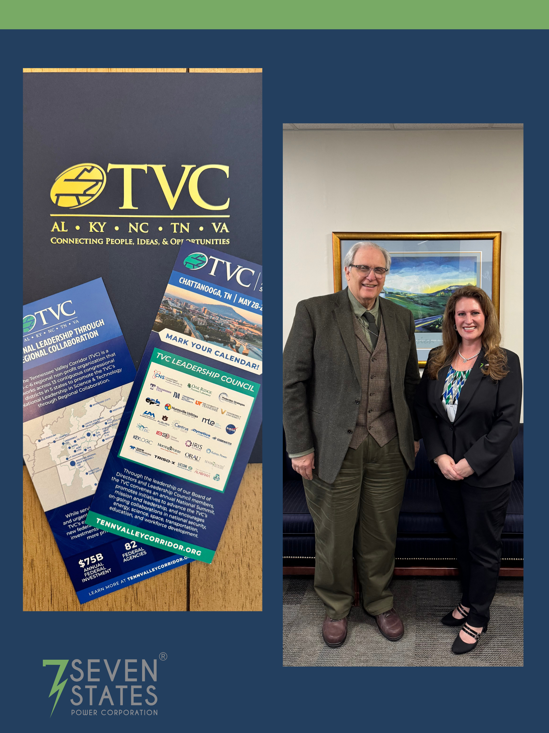 The 7SPC Board Heard from Brad Rains, TVPPA’s manager of DER Deployments, who reported that 7SPC has 10 electric-vehicle (EV) projects in the pipeline, each of which is expected to reach completion in the next three to six months. Three of 7SPC’s four EV parking spaces in Chattanooga are under lease. 7SPC is also participating in the Drive Electric Tennessee program.