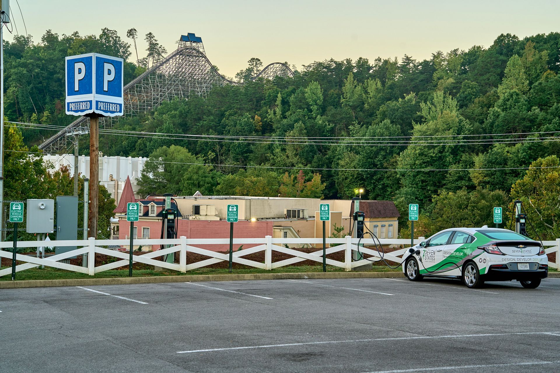 Seven States was proud to partner with both Dollywood and SCES to unveil 7 new EV charging stations with 14 new charging ports as well as 10 solar-powered umbrella charging stations for use by visitors to the park. These projects are another step forward in advancing transportation infrastructure to support the growing demand for electric vehicles in East Tennessee. Designed, developed, and deployed by Seven States, the project reflects a commitment to innovation, community partnership, and serving Dollywood guests. Read More.