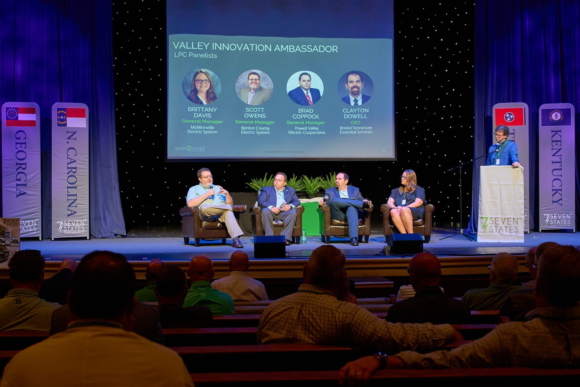 The event also featured key LPC leaders who currently serve as Seven States Valley Innovation Ambassadors Brittany Davis (General Manager, McMinnville Electric System), Scott Owens (General Manager, Benton County Electric System), Brad Coppock, (General Manager, Powell Valley Electric Cooperative), Clayton Dowell (CEO, Bristol Tennessee Essential Services), and moderated by Monte Cooper (President & CEO, Jackson Energy Authority); with discussions highlighting how innovative technologies, policies, and processes are changing how LPCs respond to peak demand, emergencies, and overall customer service.