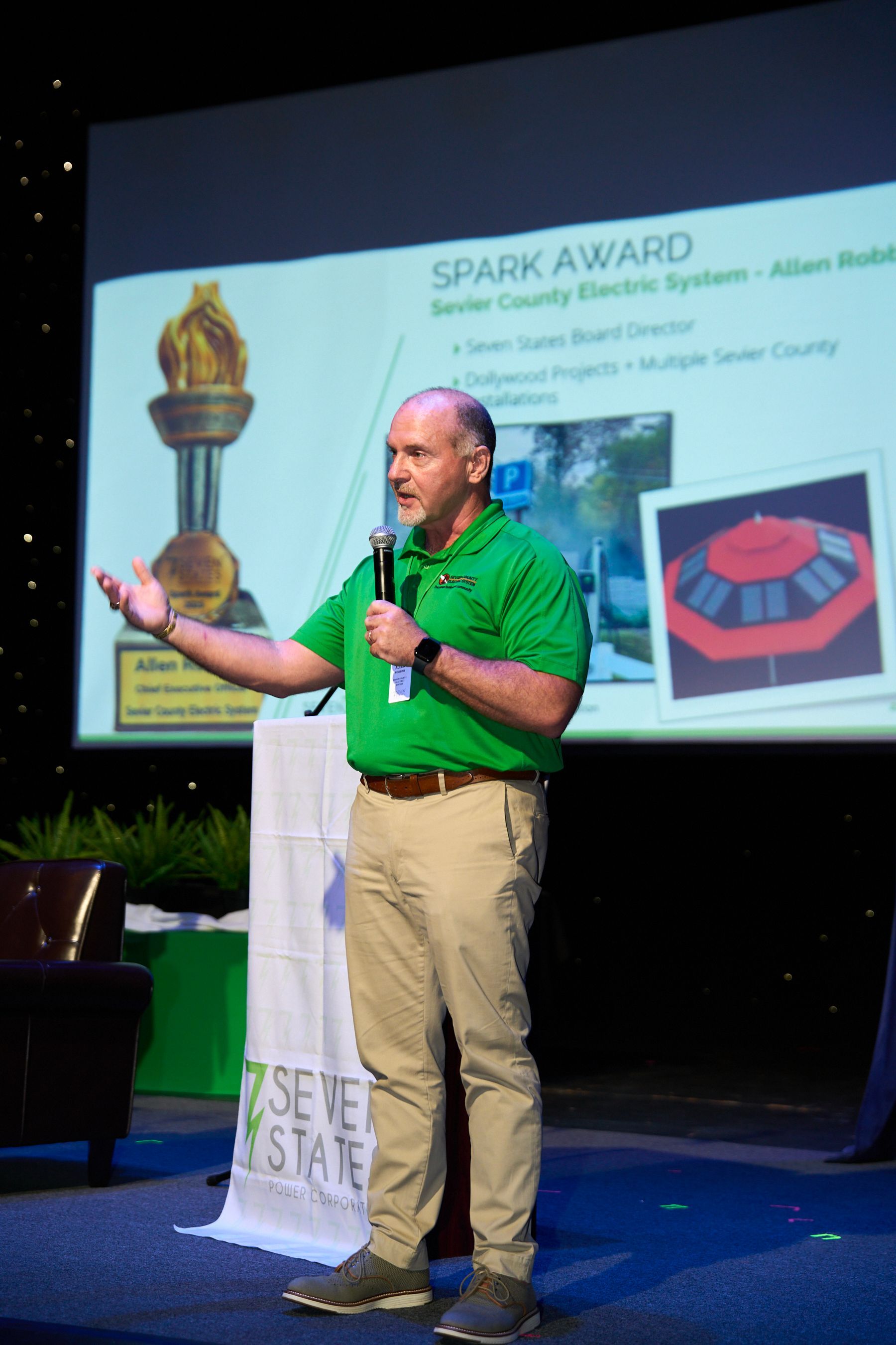 This year marks the fifth presentation of the Seven States Spark Award, which went to Allen Robbins, CEO of Sevier County Electric System (SCES). Robbins has served as CEO of SCES since August 2016 and has been with the organization for over 34 years. We are grateful for Robbins' leadership across the Valley and his invaluable service to Seven States as both a partner and former Board Member. We are honored to have worked with SCES on multiple project installations during his tenure.